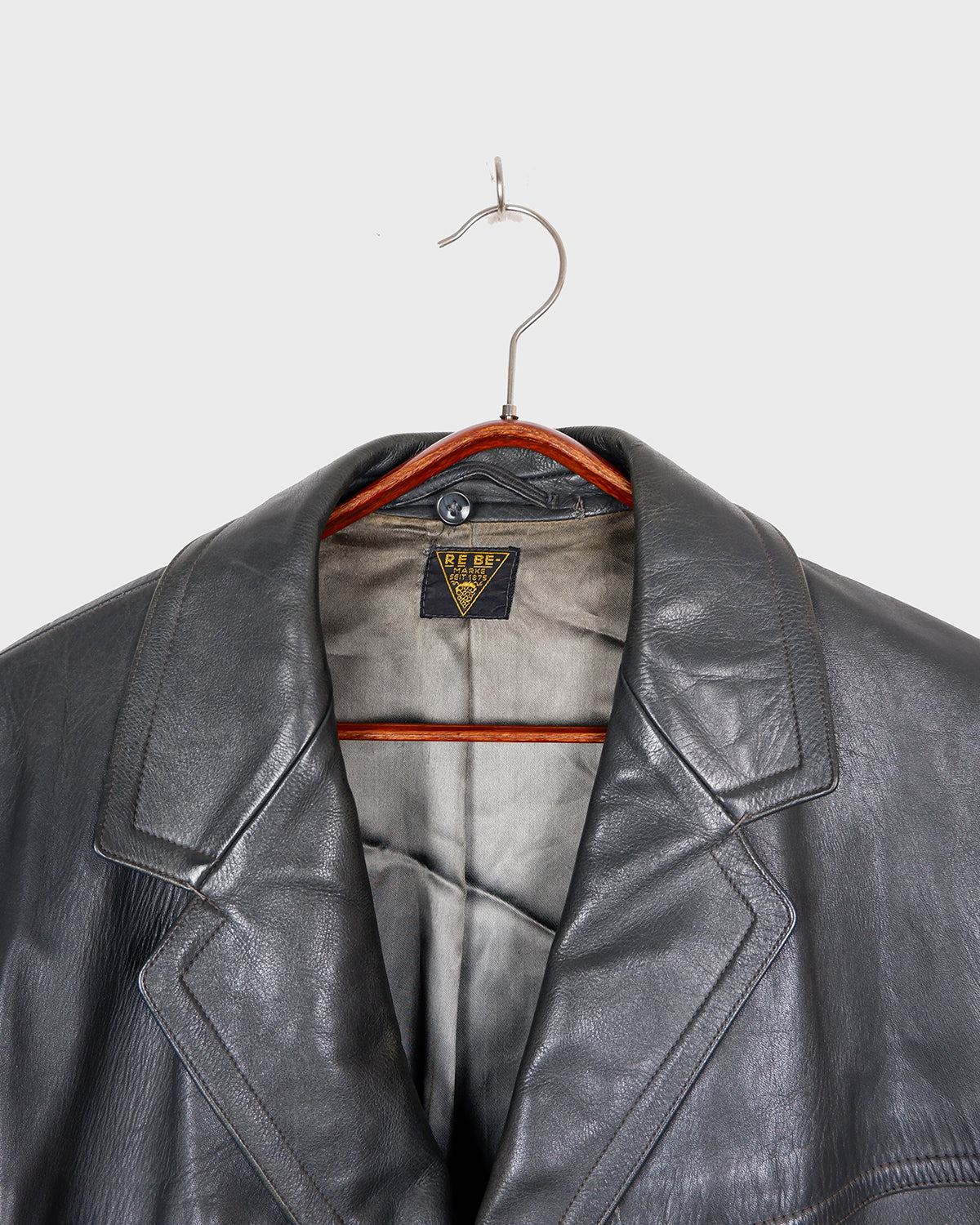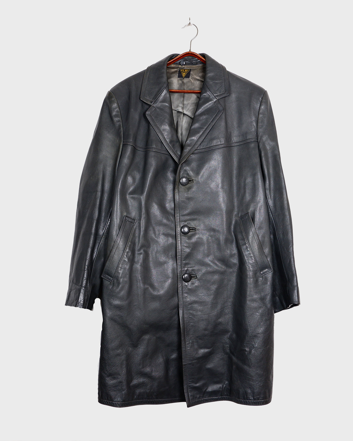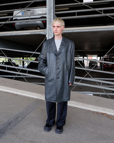 Vintage 90s REBE grey long leathercoat (heavy) | M-XL