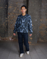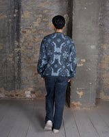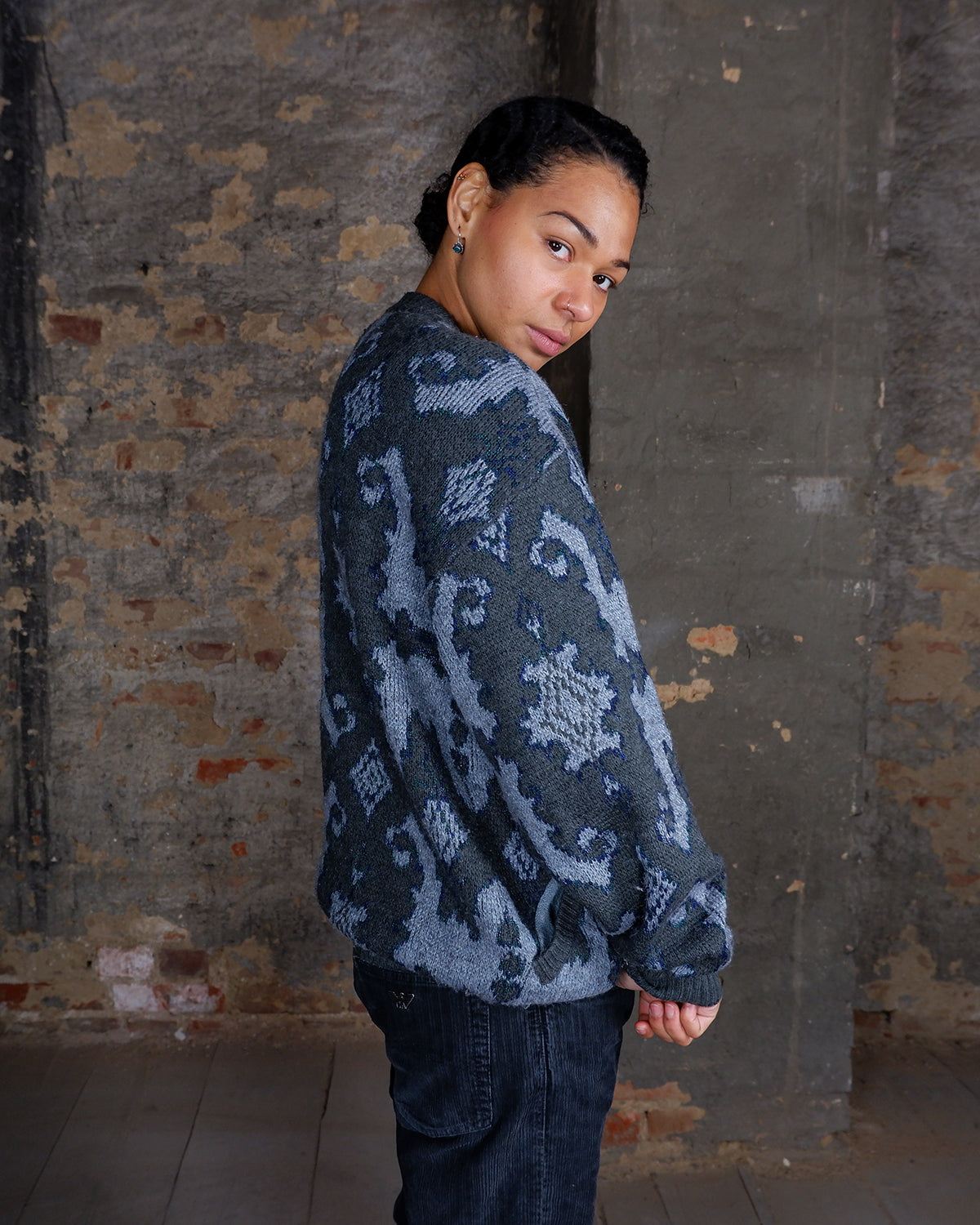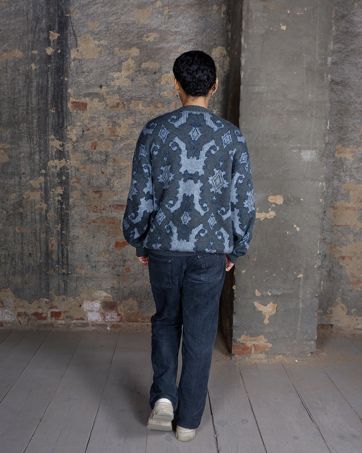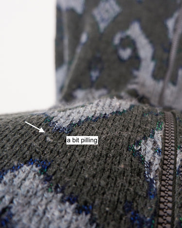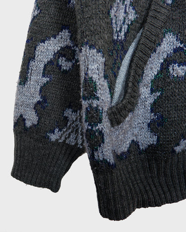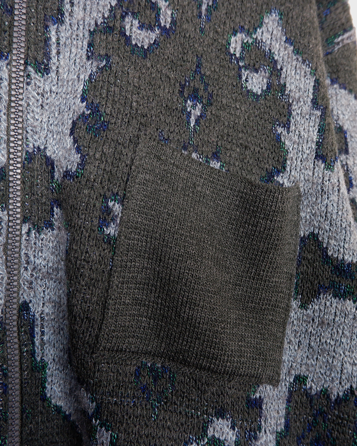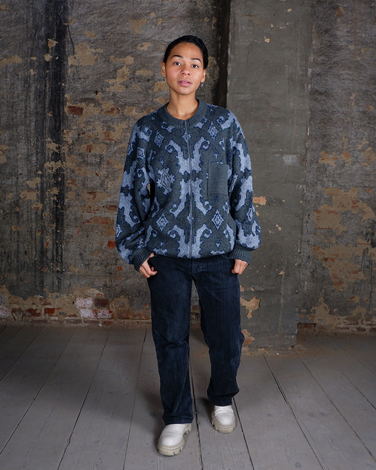 Vintage 80s 90s grey woolmix zip-up cardigan with ornament pattern and glitter accents | Size S-L