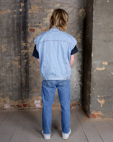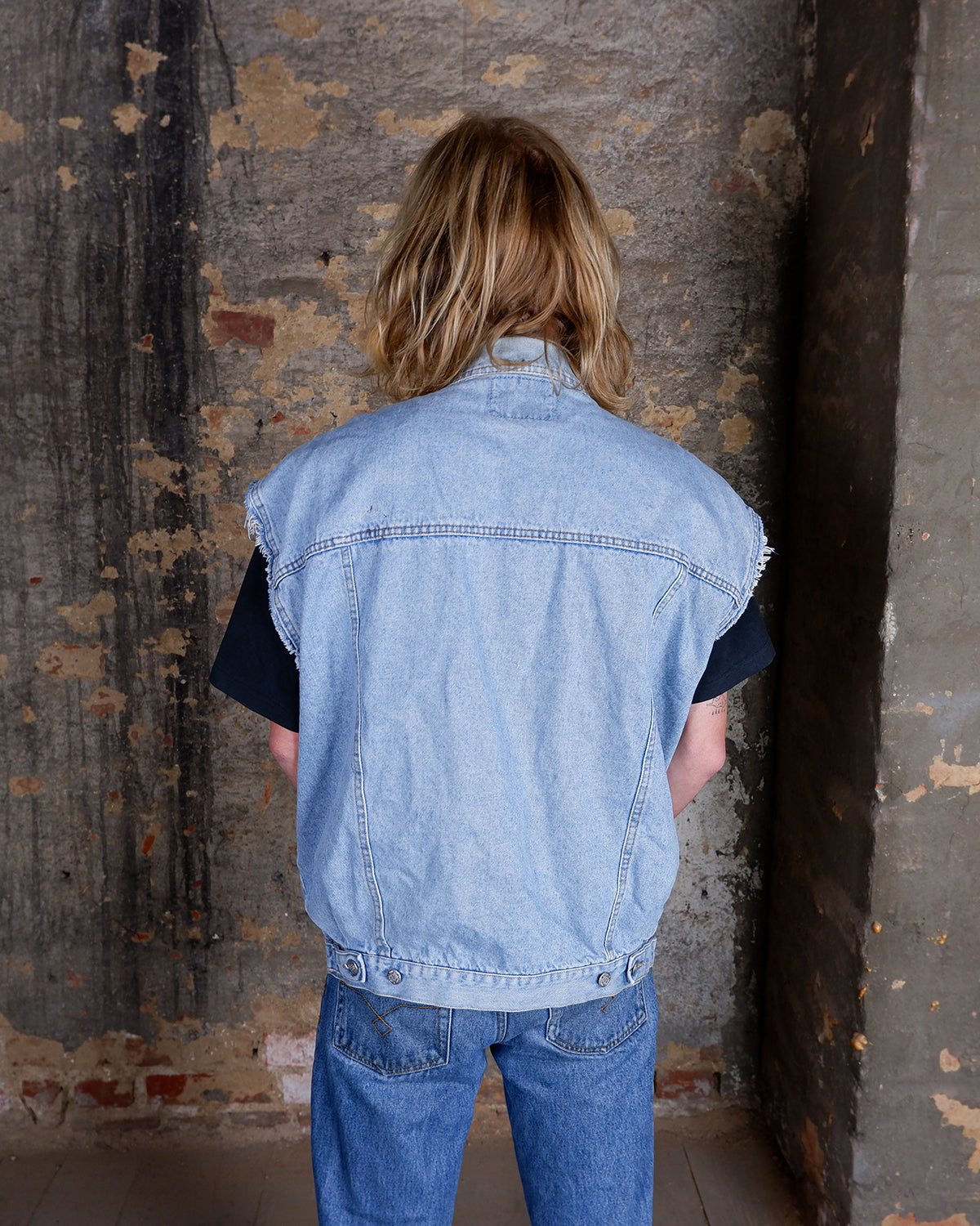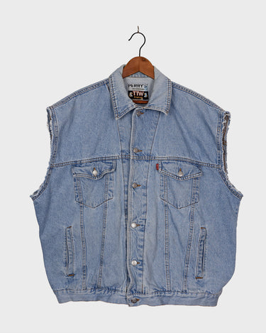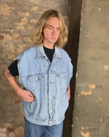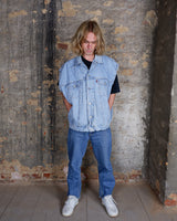 Vintage 90s PERRY'S oversized light blue denim vest | XXL