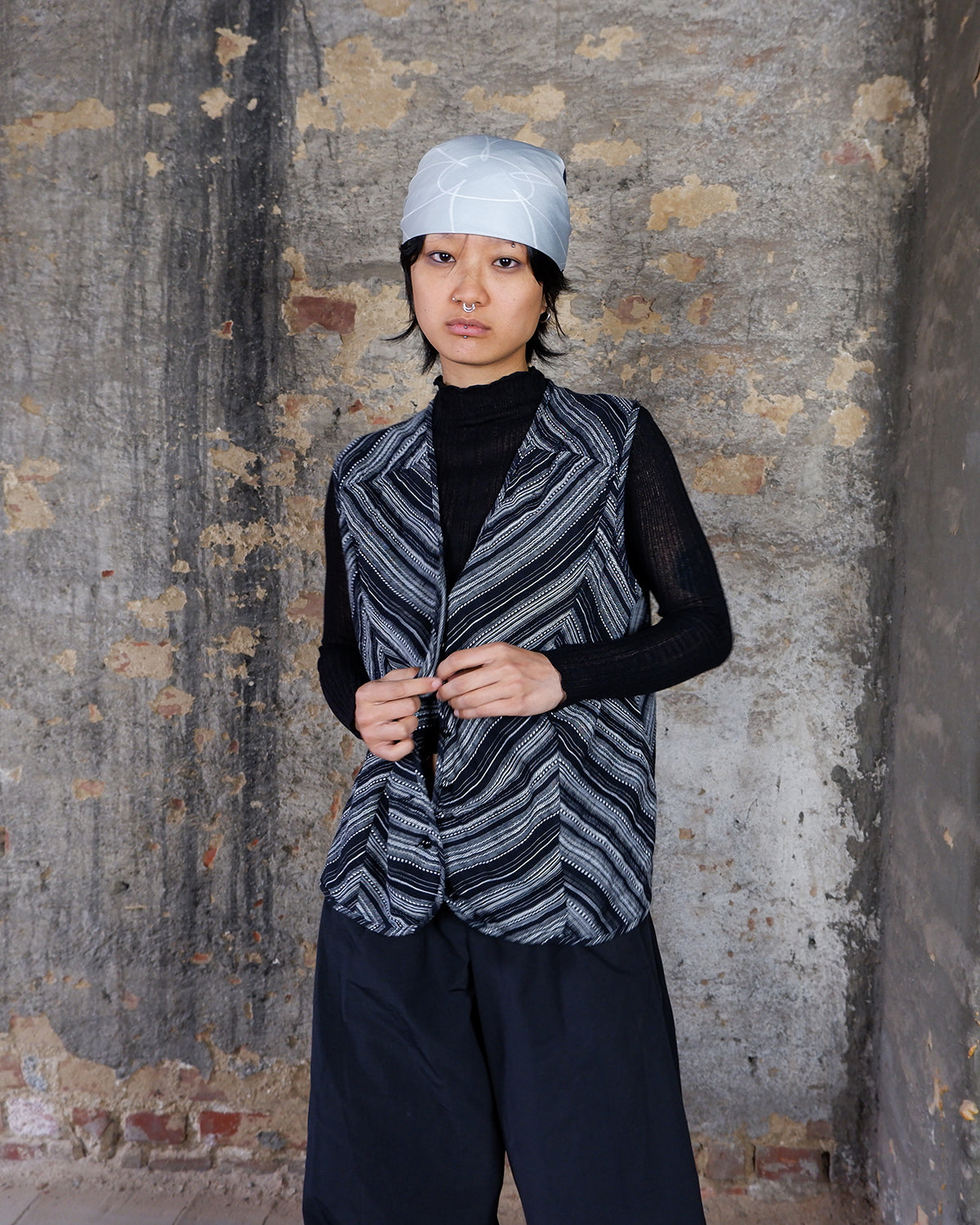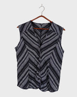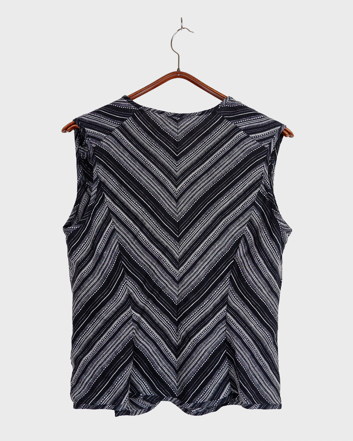Vintage 90s black vest with grey and white chevron stripe pattern (thin fabric) | L