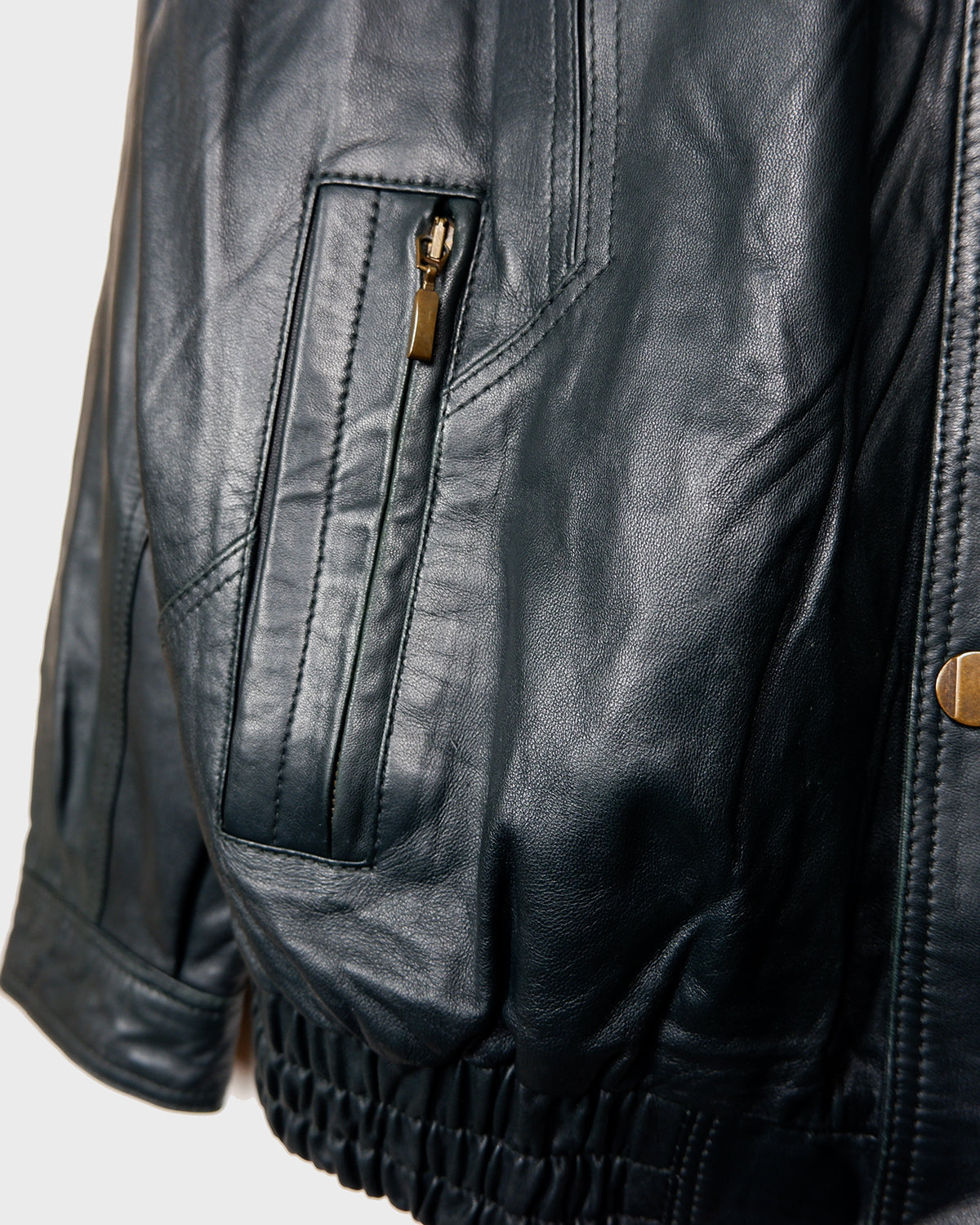 Vintage 90s Y2k GINA LEDER dark green lightweight bomber jacket with golden buttons and light shoulder pads | L-XL